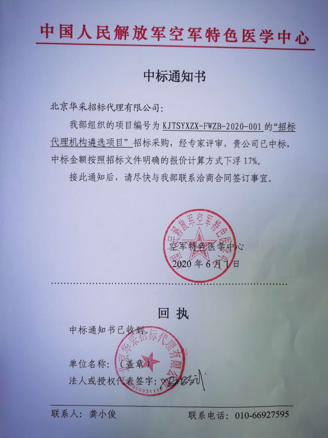 北京开云(中国)招标代理有限公司成功入围中国人民解放军空军特色医学中心招标代理机构